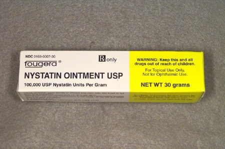 Nystatin 100,000 Ointment DRUG LABEL INFORMATION • DESCRIPTION Each gram of Nystatin Ointment USP contains 100,000 units of nystatin in a white petrolatum base. • CLINICAL PHARMACOLOGY Nystatin is an antifungal antibiotic which is both fungistatic and fungicidal in vitro, against a wide variety of yeasts and yeast-like fungi. It probably acts by binding to sterols in the cell membrane of the fungus with a resultant change in membrane permeability allowing leakage of intracellular components. Nystatin is a polyene antibiotic of undetermined structural formula that is obtained from Streptomyces noursei, and is the first well tolerated antifungal antibiotic of dependable efficacy for the treatment of cutaneous, oral and intestinal infections caused by Candida (Monilia) albicans and other Candida species. It exhibits no appreciable activity against bacteria. Nystatin provides specific therapy for all localized forms of candidiasis. Symptomatic relief is rapid, often occurring within 24 to 72 hours after the initiation of treatment. Cure is effected both clinically and mycologically in most cases of localized candidiasis. • INDICATIONS AND USAGE Nystatin Ointment USP is indicated in the treatment of cutaneous or mucocutaneous mycotic infections caused by Candida (Monilia) albicans and other Candida species. • CONTRAINDICATIONS Nystatin Ointment USP is contraindicated in patients with a history of hypersensitivity to any of its components. • PRECAUTIONS Should a reaction of hypersensitivity occur the drug should be immediately withdrawn and appropriate measures taken. • ADVERSE REACTIONS Nystatin is virtually nontoxic and nonsensitizing and is well tolerated by all age groups including debilitated infants, even on prolonged administration. If irritation on topical application should occur, discontinue medication. • DOSAGE AND ADMINISTRATION Nystatin Ointment USP should be applied liberally to the affected areas twice a day or as indicated until healing is complete. The ointment does not stain the skin or mucous membranes and it provides a simple, convenient means of treatment. • HOW SUPPLIED Nystatin Ointment USP 100,000 units/g 15 g tube (0.53 oz) 30 g tube (1.1 oz) Store at controlled room temperature 15°-30°C (59°-86°F). Do not freeze. what is nystatin cream used to treat nystatin cream yeast infection how to apply nystatin cream nystatin cream for babies nystatin cream over the counter what is nystatin cream used to treat nystatin ointment usp 100 000 units per gram nystatin cream yeast infection how to apply nystatin cream nystatin cream usp 100 000 for yeast infection how to apply nystatin cream for yeast infection nystatin cream for babies nystatin cream over the counter Per page